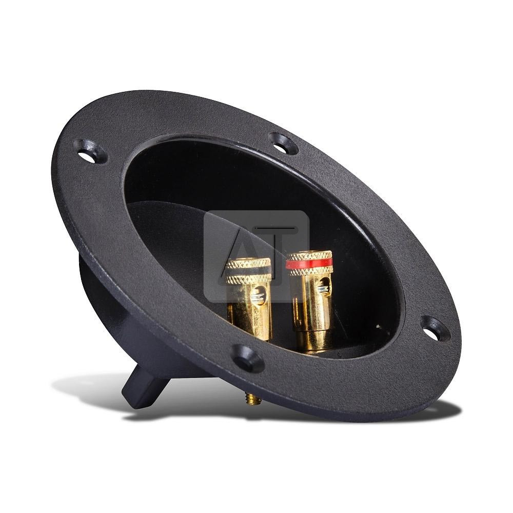 Круглая клеммная коробка для сабвуферных ящиков Kicx TC-0109, клеммы для подключения 1 катушки с зажимом проводов пружиннными клеммами