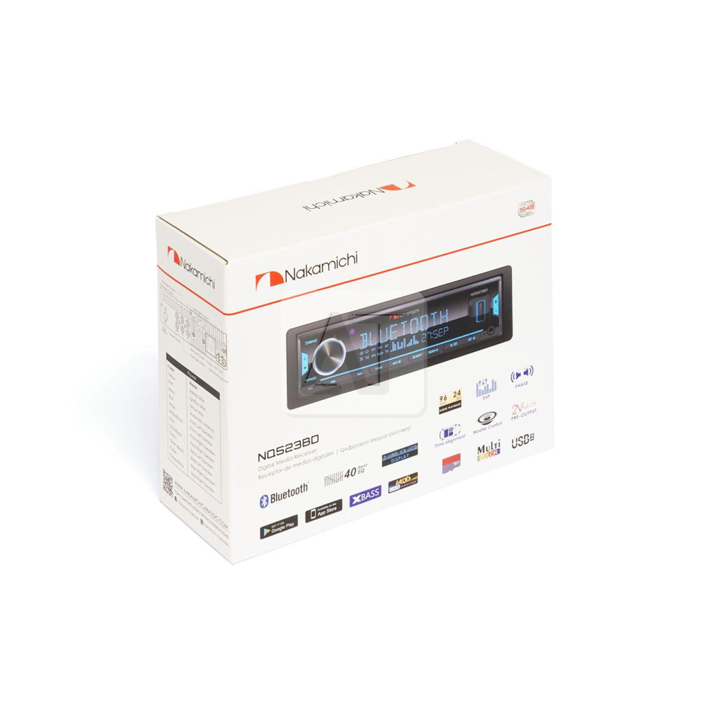 Автомагнітола Nakamichi NQ523BD DSP – це однодіновий бездисковий MP3 / USB / FM програвач, який забезпечить вам повне занурення у світ музики. На борту є багатофункціональний звуковий процесор (DSP). Він допомагає правильно вибудовувати глибину звучання за допомогою часових затримок та дозволяє працювати у двох режимах – 2-WAY (фронт, тил, сабвуфер) та 3-WAY (поканальне підключення акустичних систем плюс сабвуфер). Крім того, ви отримуєте можливість тонкого налаштування високих / низьких частот для певних динаміків, також можна змінити фазування сабвуфера. Дана автомагнітола зможе здивувати своїми можливостями як звичайного користувача, так і справжнього поціновувача автозвуку.