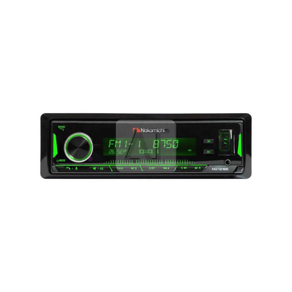Nakamichi NQ721BE – це якісний ресівер з функцією AM/FM-радіо, модулем Bluetooth, Aux-In та Apps Control. Розмір установки універсальний 1DIN підходить для всіх салонів автомобіля. Панель передня знімна, чорного кольору, зі стильним мультипідсвічуванням кнопок. Вертикально орієнтований LCD-дисплеєм з білим підсвічуванням, з автоматичним регулюванням яскравості та з підтримкою тексту російською мовою.