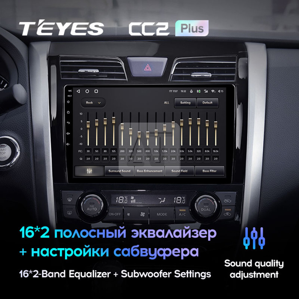 Головні пристрої Teyes на ОС Android з оригінальним підсилювачем звуку STM TDA-7851 і вбудованим апаратним DSP-процесором відрізняються набагато якіснішим звуком і широкими налаштуваннями звуку, в порівнянні з аналогічними пристроями на платформі Android. 8-ядерний процесор і 3/4/6Gb оперативної пам'яті дозволяють впоратися навіть зі складними завданнями швидко та ефективно. Багатозадачність даного пристрою дозволяє користуватися різними функціями одночасно, наприклад, завантажувати фільм з мережі інтернет, при цьому у вас працює навігація і ви насолодитеся улюбленим треком / піснею з якісним звуком на магнітолі. До того ж на даному апараті використовується МАТРИЦЯ QLED, завдяки якій якість зображення виходить на новий рівень: картинка соковита, яскрава, відблисків по-мініму, кут огляду дуже широкий. Складання пристрою виконано на дуже високому рівні.